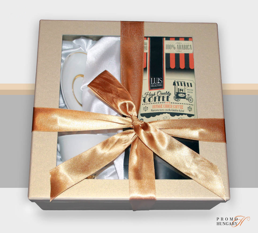 Exkluzív Kávés szettünk elkészítésénél így esett választásunk a Hollóházi porcelán kávés csészére arany díszítéssel, kiegészítve arany díszítéses Hollóházi porcelán kávés csészealjjal, Luis prémium szemes kávéval (90 g).