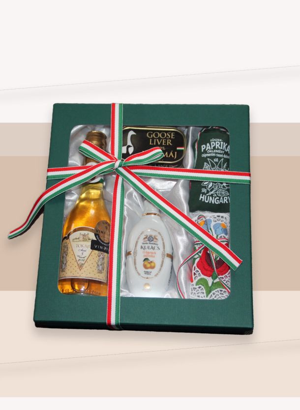 A világhírű Tokaji Aszúval (6 puttonyos, 2017-es évjárat, 250 ml) kiegészítve, elegáns kézzel készített díszdobozban színvonalasan reprezentálja Önt, vállalatát és Magyarországot